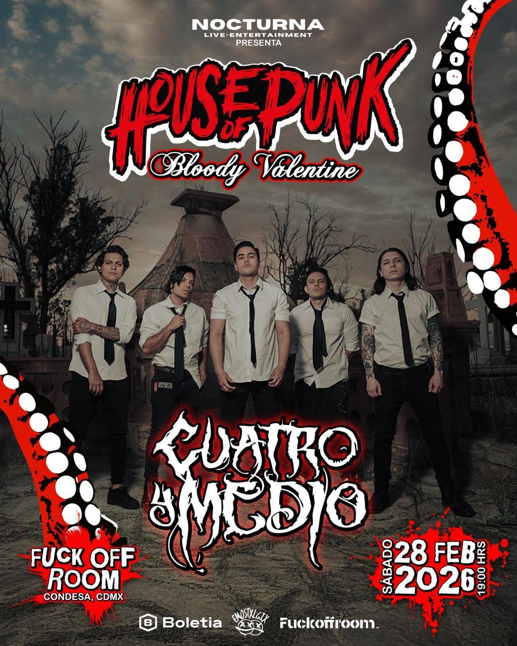 en esta ocasión nos tocó estar en la rueda de prensa de este grupo que se llama cuarto y medio, para mí es una banda nueva pero sin lugar a dudas es una banda puramente mexicana, el rock con un toque de pop muy independiente estos muchachos son particularmente ya que tienen ese estilo de “Emo”, que muchos hemos pasado y formadopensé que era nueva sin embargo tiene desde el 2001 que empezaron con su música qué tienen en sí como una temática por abordar temas totalmente emocionales, sí como mencioné ellos tienen ese virtud en el cual incluyen para que tengan una concientización sobre el suicidio.  sé que es un tema muy fuerte pero ellos lo abordan muy amplia y amenamente. sus integrantes de esta agrupación son Beto que está en la batería, Eruviel que está en la guitarra, Pepe en el bajo, Chuy es la voz principal, Ñil que está en la guitarra y Nasty Que se encuentra tanto en voz como en coros, sin lugar a dudas ellos han sido particularmente trabajando con diferentes circunstancias han tenido diferentes éxitos como “funeral de 2”, “Latidos” y el EP “Siempre”.