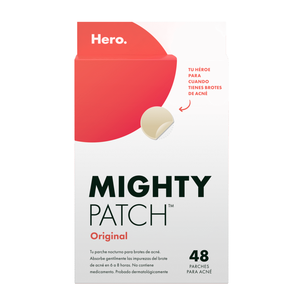 Si necesitas un parche discreto que no se mueva ni irrite, Hero Patch Original es perfecto para usar toda la noche. Y si tu brote es más grande o se concentra en zonas amplias (como barbilla o frente), Hero Patch Surface cubre y actúa en múltiples granitos a la vez.