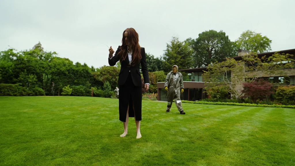 El humor negro de Bugonia funciona como un filo entre escenas de tortura improvisada, paranoia compartida y un clímax que abraza el caos con sorprendente calma, surge una crítica directa al capitalismo desbordado, a las teorías conspirativas que se esparcen como polen tóxico y a la idea absurda de que la violencia puede ser un camino hacia la salvación. Las abejas, la metáfora original del mito, regresan como símbolo de una vida que solo puede nacer de un sistema en descomposición. Lanthimos no parece interesado en salvar a la humanidad, sino en obligarla a admitir su propia podredumbre.